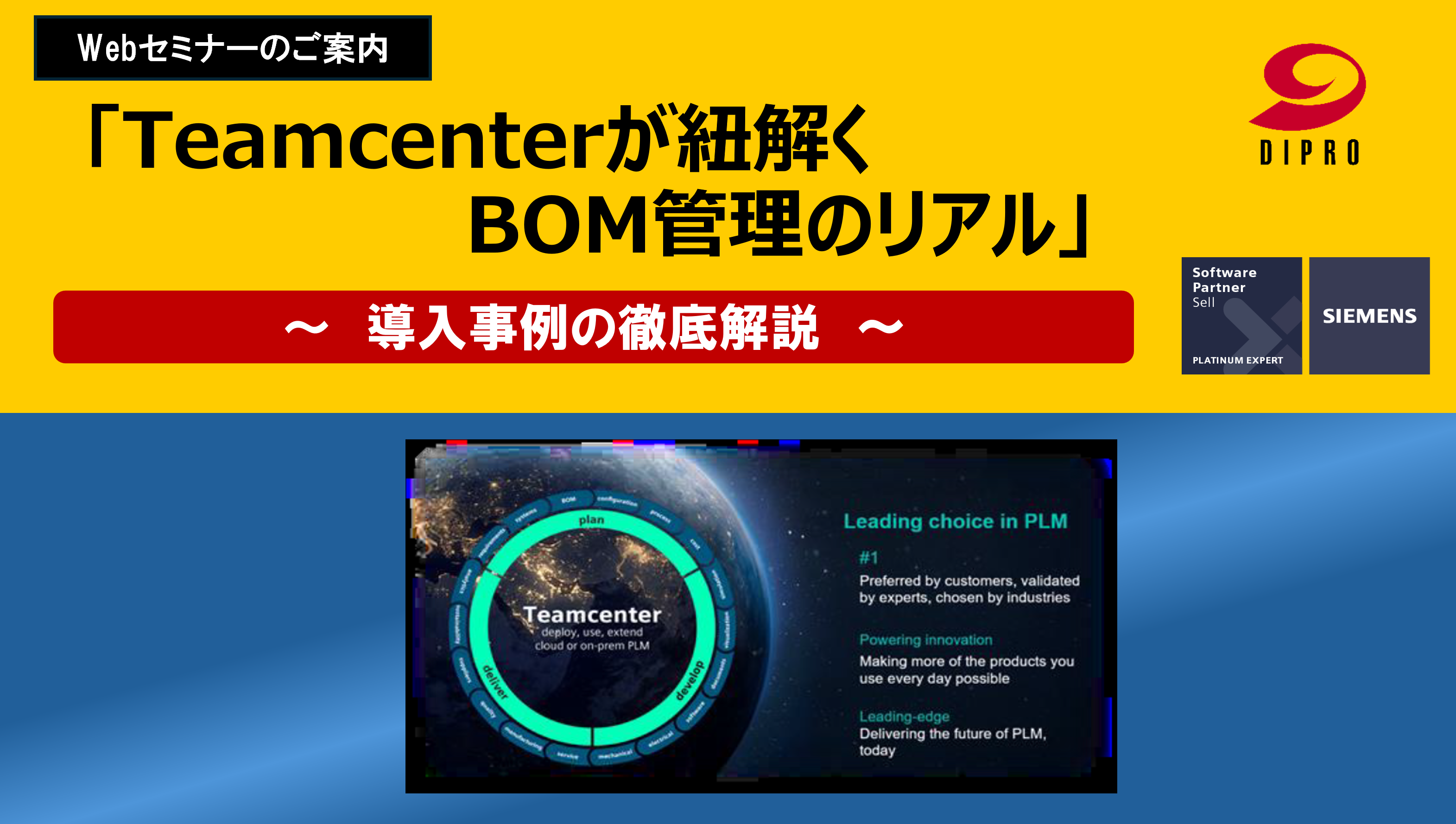 世界No.1評価を受けるPLMソリューション「Teamcenter」とSaaS化したクラウドPLM「Teamcenter X」の特長、弊社の豊富な実績と独自手法による導入メリットなどをご紹介。「Why TC?」「Why TCX?」「Why DIPRO?」の3つの視点から、なぜ今「Teamcenter X」なのか、その真価に迫ります。