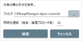 ② 設計データの格納フォルダを指定し、「検索」ボタンをクリックします